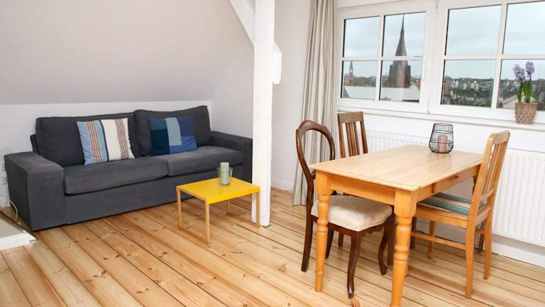 Das Studio mit Panoramablick verfügt über eine voll ausgestattete Küchenzeile, so dass Sie sich Ihre Mahlzeiten bequem selbst zubereiten können. Alternativ können Sie auch die nahegelegene Fußgängerzone von Flensburg erkunden, in der Sie eine Vielzahl von Restaurants und Cafés finden, die lokale und internationale Küche anbieten.