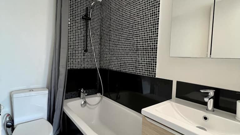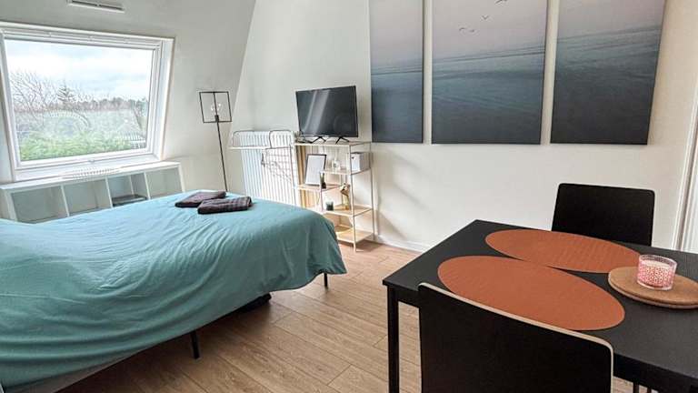Die Ferienwohnung umfasst ein Schlafzimmer, eine Küche, die mit einem Kühlschrank und einer Mikrowelle ausgestattet ist, sowie ein Badezimmer mit Badewanne und kostenlosen Pflegeprodukten. Handtücher und Bettwäsche werden bereitgestellt.
