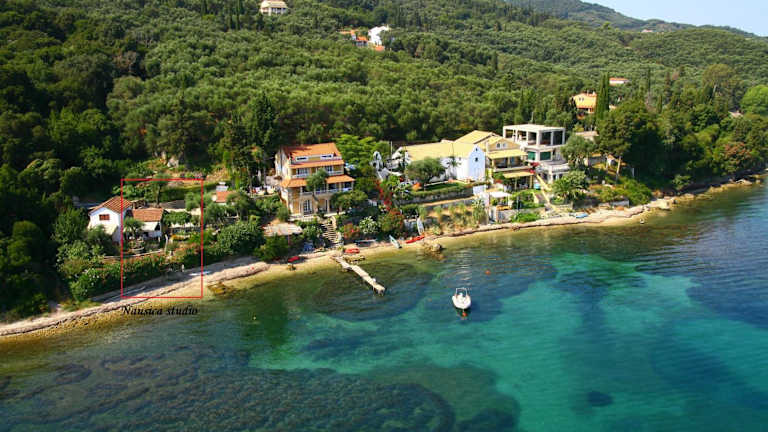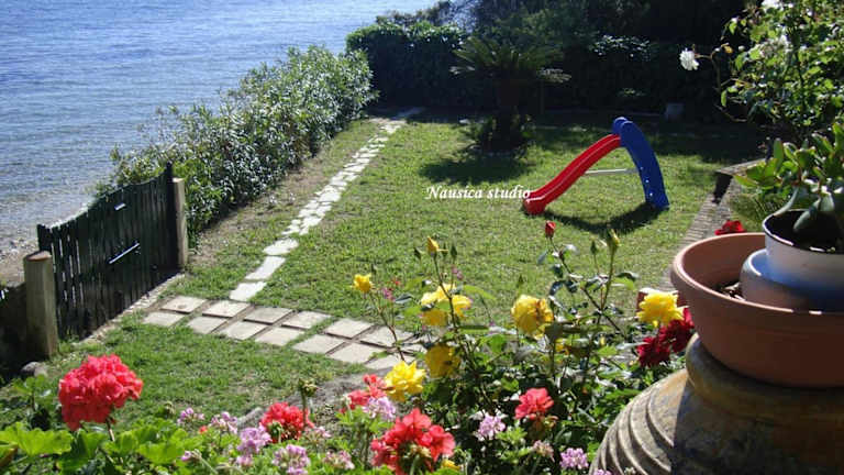 Das Studio Nausica bietet einen eigenen Strandbereich, so dass Sie die Sonne und das Meer in vollen Zügen genießen können. Sie können auch im Garten entspannen oder auf der Terrasse sitzen und die herrliche Aussicht auf das Meer genießen.