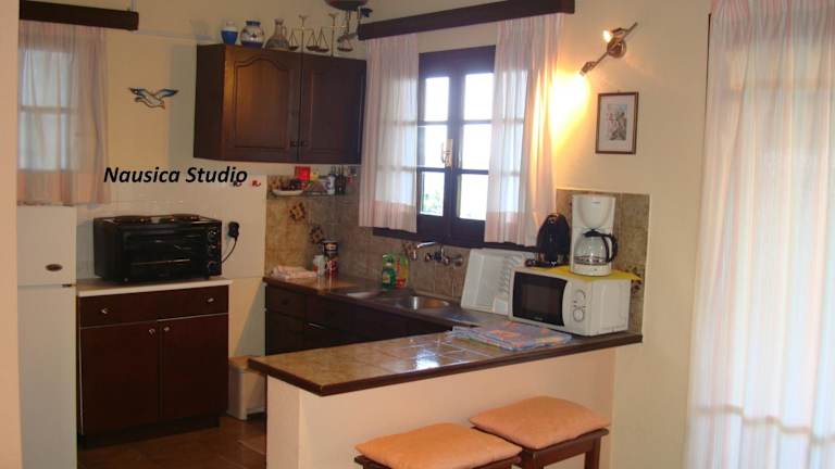 Das Studio Nausica bietet eine komfortable Unterkunft mit einem Schlafzimmer, einer voll ausgestatteten Küche mit Kühlschrank und Backofen sowie einem Badezimmer mit Dusche, Haartrockner und Waschmaschine. Handtücher und Bettwäsche werden gestellt, so dass Sie sich um nichts kümmern müssen. Das Studio ist klimatisiert, so dass Sie sich auch an heißen Tagen wohlfühlen können.