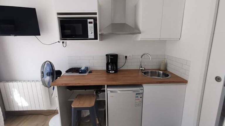 Die Ferienwohnung verfügt über ein Schlafzimmer und einen Flachbild-TV mit Kabelkanälen. Die gut ausgestattete Küche ist mit einem Kühlschrank und einer Mikrowelle ausgestattet. Das Badezimmer beinhaltet eine Dusche. Handtücher und Bettwäsche können gegen Aufpreis bereitgestellt werden.