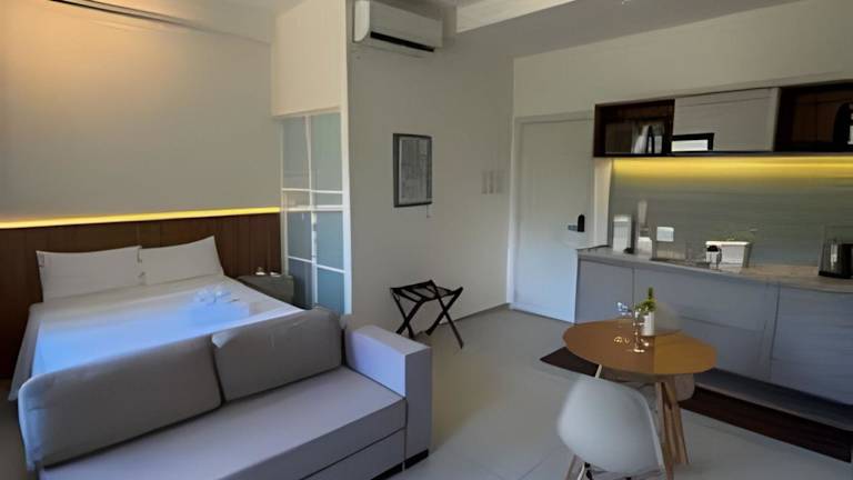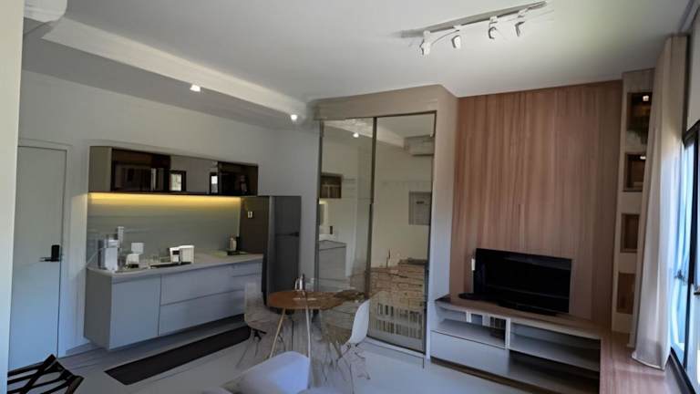Studio Novo - Cama Queen com massageador ist eine Ferienwohnung mit Gartenblick und einem eigenen Pool. Diese Unterkunft bietet kostenfreies WLAN und kostenlose Privatparkplätze. Die Wohnung verfügt über ein Schlafzimmer und ein Wohnzimmer.