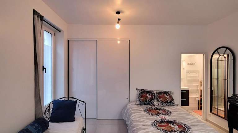 Die Ferienwohnung umfasst 1 Schlafzimmer und eine Küche, die mit einem Kühlschrank und einem Ofen ausgestattet ist. Sie verfügt über ein Badezimmer mit Dusche und kostenlosen Pflegeprodukten. Handtücher und Bettwäsche werden zur Verfügung gestellt.