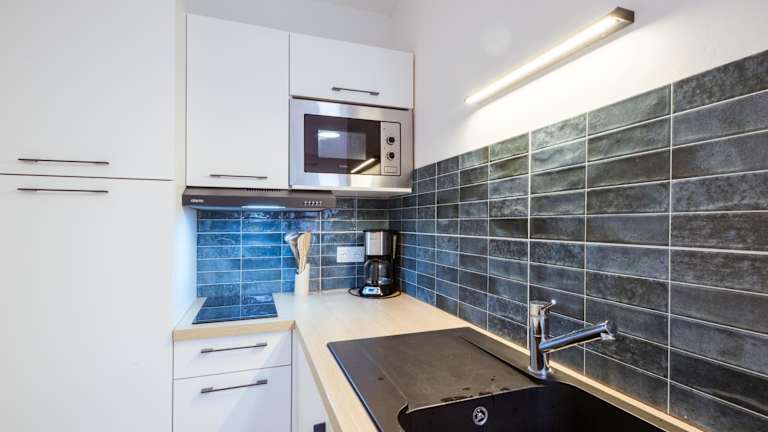 Die Ferienwohnung bietet ein Schlafzimmer und ist mit einer voll ausgestatteten Küche ausgestattet, die einen Kühlschrank und eine Mikrowelle umfasst. Zudem gibt es ein Badezimmer mit Dusche und Haartrockner. Handtücher und Bettwäsche sind in der Unterkunft bereitgestellt.
