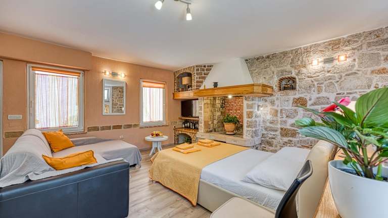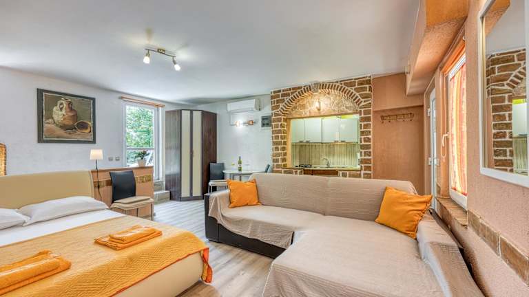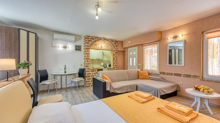 Das Studio Tommy 1 liegt zentral in Rovinj und bietet eine ideale Ausgangslage, um die Stadt und die Umgebung zu erkunden. Der nächste Strand ist nur 700 m entfernt und lädt zum Sonnenbaden und Schwimmen ein. In der Umgebung finden Sie eine große Auswahl an Restaurants, Bars und Museen. Die lebhafte Straße Carera ist nur 150 m entfernt und bietet Einkaufs- und Unterhaltungsmöglichkeiten. Der Flughafen Pula ist mit einer Entfernung von 35 km gut erreichbar.
