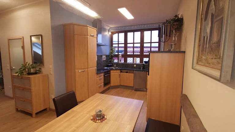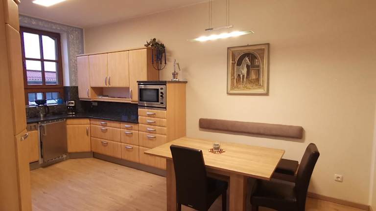 In der kuscheligen Dachwohnung auf dem Pferdehof haben Sie die Möglichkeit, Ihre eigenen Mahlzeiten zuzubereiten und in der gemütlichen Küche zu genießen. Alternativ können Sie in den umliegenden Restaurants die lokale Küche probieren und traditionelle Gerichte erleben.