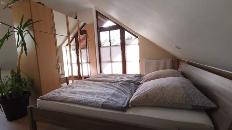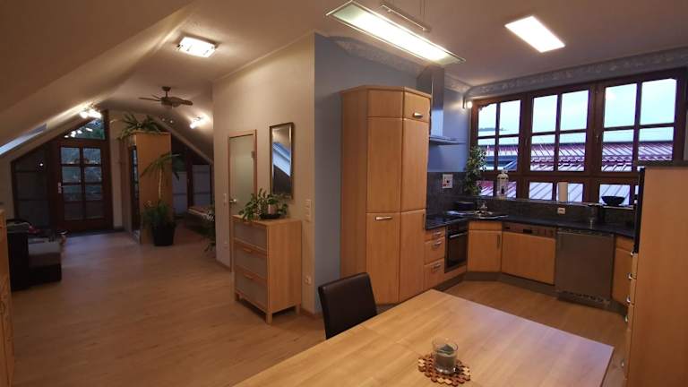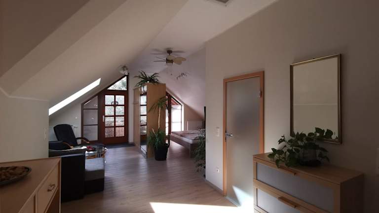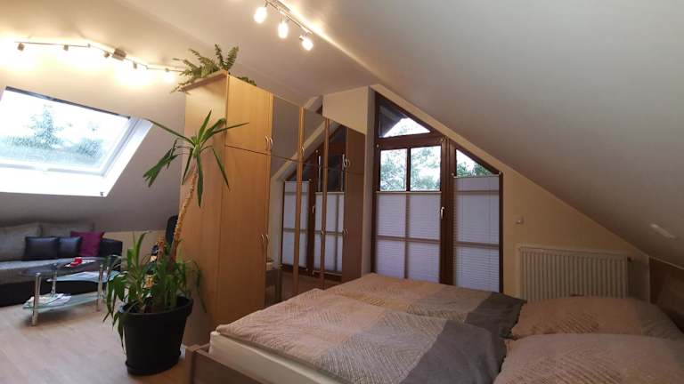 Die kuschelige Dachwohnung auf dem Pferdehof liegt in Burgpreppach, nur 47 km von der Konzert- und Kongresshalle Bamberg und dem Bamberger Dom entfernt. Die Umgebung bietet Ihnen eine idyllische Landschaft und die Möglichkeit, die Natur zu genießen. Der Hauptbahnhof Bamberg ist in einer Entfernung von 47 km leicht erreichbar. In der Nähe der Unterkunft finden Sie auch einen Garten und kostenfreie Privatparkplätze.