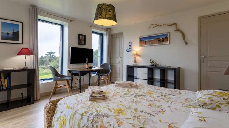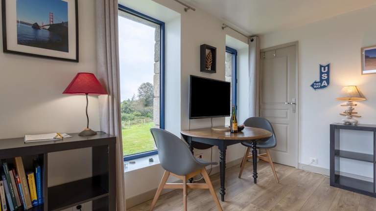 Studio vue magique proche Locronan ist eine Ferienwohnung, die eine Terrasse und einen Garten umfasst. Kostenloses WLAN sowie ein kostenfreier Privatparkplatz stehen zur Verfügung.
