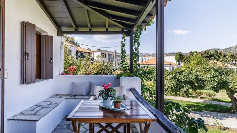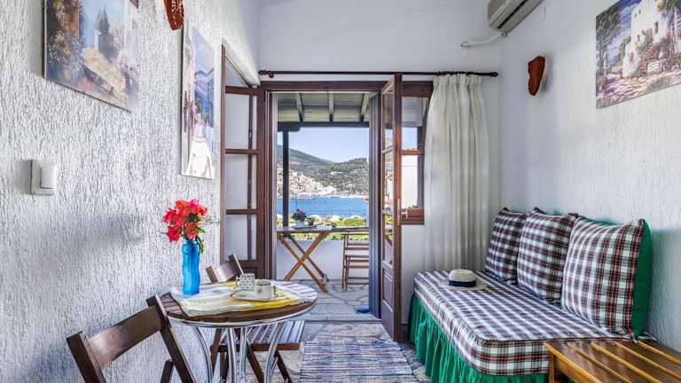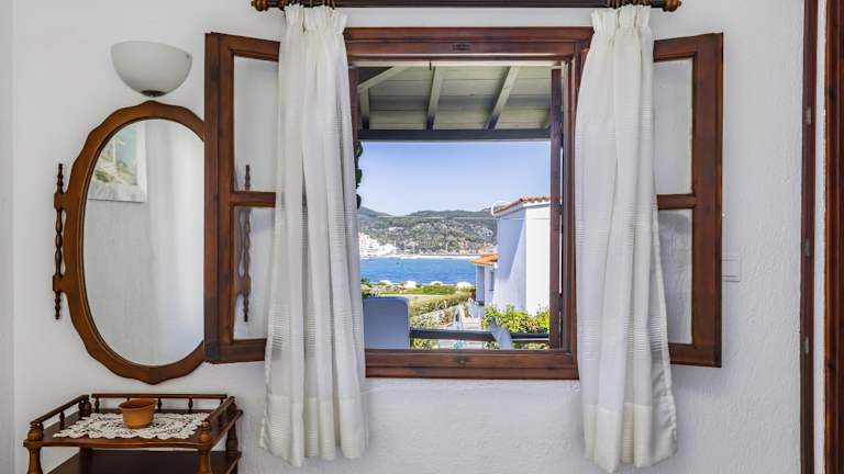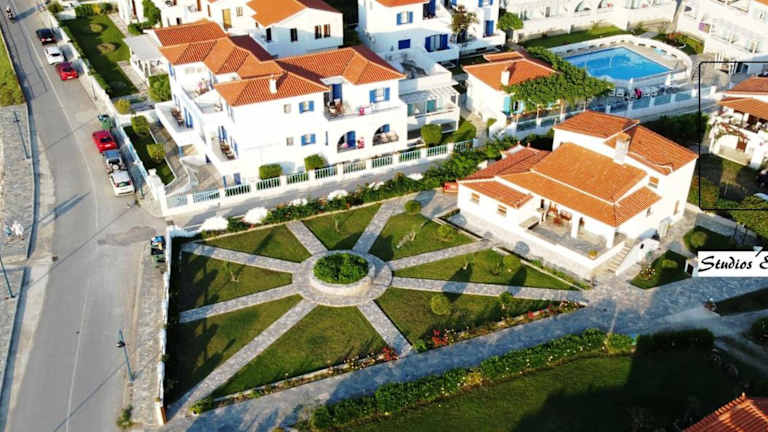 Die Studios Elpiniki befinden sich in einer ruhigen und grünen Umgebung entlang der Küstenstraße von Skopelos. Von hier aus haben Sie einen atemberaubenden Blick auf die Ägäis, den Hauptort Skopelos und die umliegenden Berge. Der nächstgelegene Strand ist nur 60 m entfernt und lädt zum Sonnenbaden und Schwimmen ein. Der berühmte Strand Stafylos ist 4 km entfernt und zum Strand Panormos sind es 12 km. Der Hauptort Skopelos mit seinen Restaurants, Tavernen, Bars und Souvenirläden erreichen Sie nach einem 5-minütigen Spaziergang oder 700 m.
