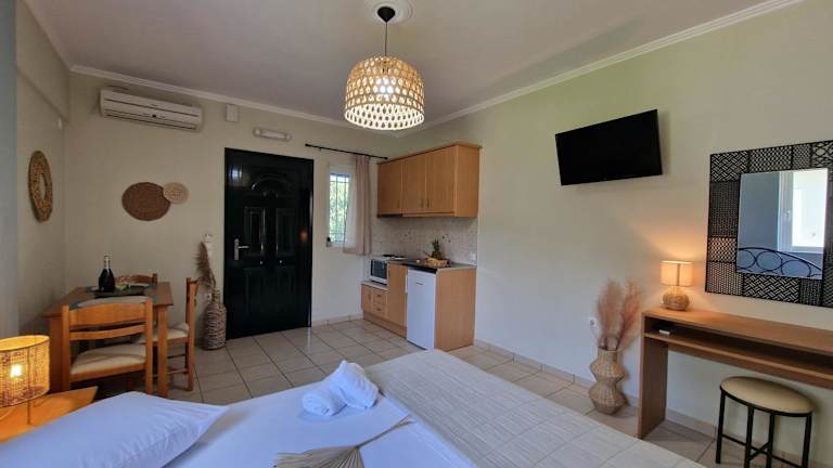 Die Apartments im Studios Niki B sind komfortabel eingerichtet und bieten alles, was Sie für einen angenehmen Aufenthalt benötigen. Jedes Apartment verfügt über eine Terrasse, auf der Sie entspannen und den Blick auf den gepflegten Garten genießen können. Die klimatisierten Zimmer bieten auch einen TV für Ihre Unterhaltung. Eine gut ausgestattete Küche mit Backofen und Kühlschrank steht Ihnen ebenfalls zur Verfügung, so dass Sie Ihre eigenen Mahlzeiten zubereiten können. Das eigene Bad ist mit einer Dusche und einem Haartrockner ausgestattet. Kostenloses WLAN ist in den öffentlichen Bereichen der Unterkunft verfügbar.