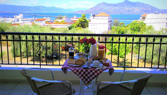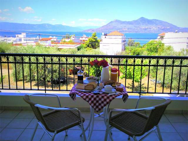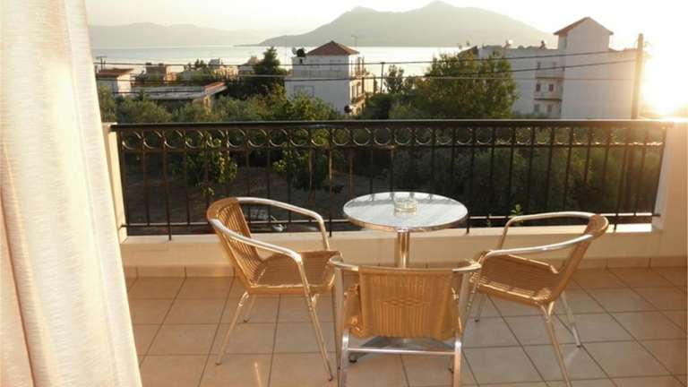 Die klimatisierten Unterkünfte sind mit Fliesenböden, eigenem Badezimmer, Flachbild-TV und einem Schreibtisch ausgestattet. Jedes Studio verfügt über eine Terrasse mit Meerblick sowie eine voll ausgestattete Küche mit Kühlschrank, Ofen, Herdplatte, Kaffeemaschine und Wasserkocher.