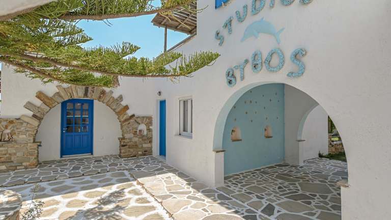 Die Studios Vythos befinden sich in ruhiger Lage in Kastraki, nur etwa 150 m vom nächsten Strand entfernt. Die Stadt Naxos ist 17 km entfernt und der Flughafen Naxos erreicht man nach 13 km. In der Nähe der Unterkunft finden Sie einen Minimarkt für den täglichen Bedarf sowie Tavernen, die regionale Spezialitäten servieren. Eine Bushaltestelle ist ebenfalls in kurzer Entfernung zu Fuß erreichbar.