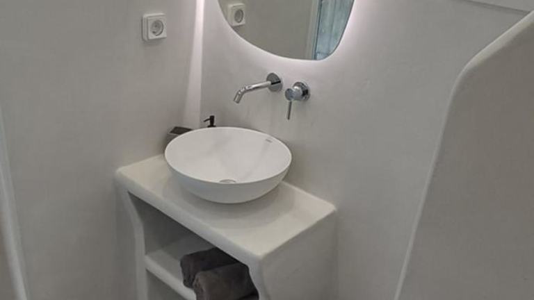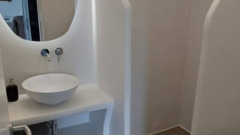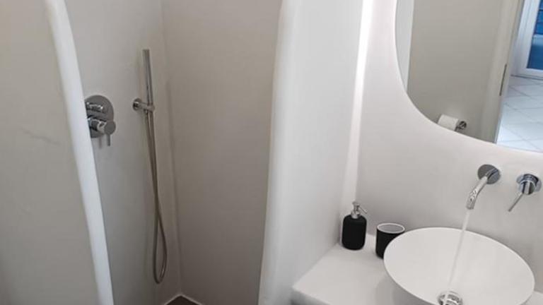 Die Studios im Vythos sind geräumig und klimatisiert. Jedes Studio verfügt über eine möblierte Terrasse mit Blick auf die Ägäis. Zur Ausstattung gehört auch eine voll ausgestattete Küchenzeile mit Kühlschrank und Herdplatten. Ein TV und ein eigenes Badezimmer gehören ebenfalls zur Standardausstattung.