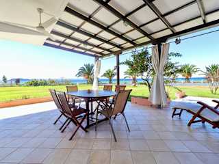 Die Stunning beachfront villa for rent bietet einen Balkon, einen Garten und kostenloses WLAN. Die Unterkunft verfügt über eine Veranda/Pati mit Blick auf den Garten und das Meer.