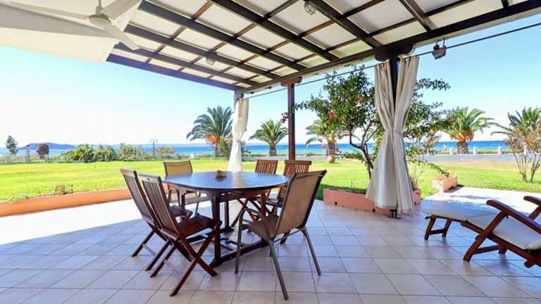 Die Villa bietet 4 Schlafzimmer und 1 Badezimmer. Zur Ausstattung gehören Bettwäsche, Handtücher, ein TV, eine voll ausgestattete Küche und eine Terrasse mit Meerblick.