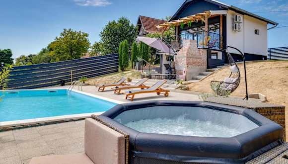 Das Stunning Home In Bjelovar ist ein Ferienhaus, das über einen eigenen Pool sowie einen Whirlpool im Wellness-Bereich verfügt. Es bietet eine klimatisierte Umgebung und ermöglicht den Gästen einen komfortablen Aufenthalt mit verschiedenen Annehmlichkeiten.