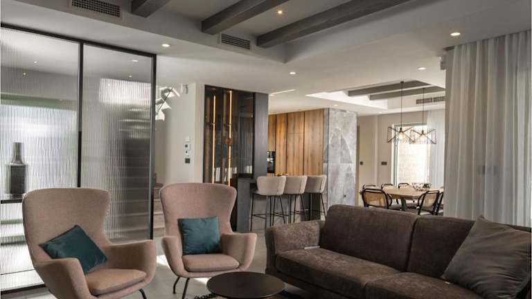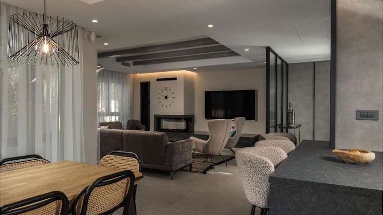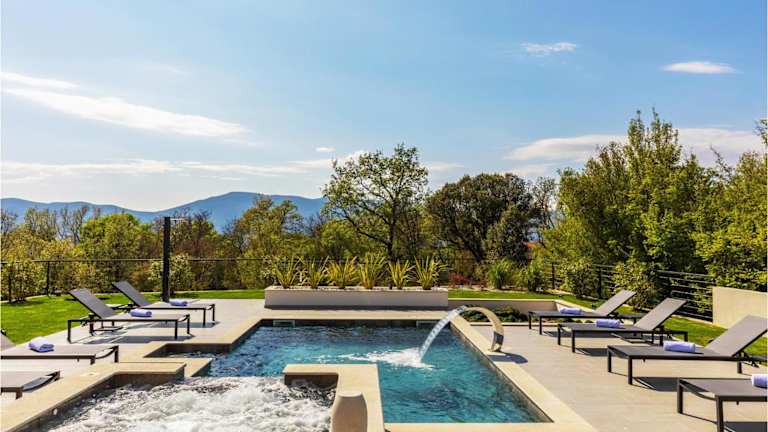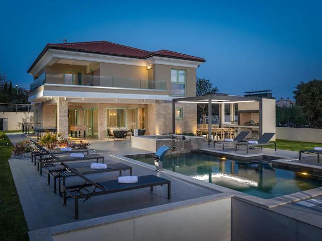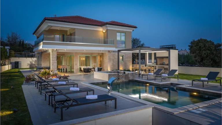 Die Zimmer in der Unterkunft sind mit Klimaanlage ausgestattet und umfassen drei Schlafzimmer. Die voll ausgestattete Küche verfügt über Geräte wie einen Kühlschrank und eine Kaffeemaschine. Jedes der drei Badezimmer ist mit einer Dusche und einem Whirlpool ausgestattet, wodurch ein hoher Komfort gewährleistet ist.