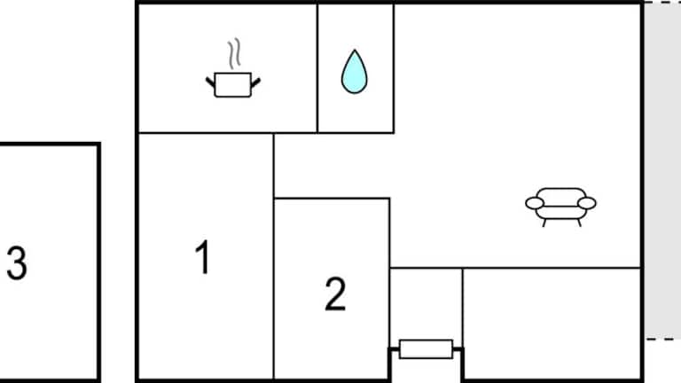 Das Ferienhaus verfügt über 3 Schlafzimmer, ein Wohnzimmer sowie eine voll ausgestattete Küche. Zur Ausstattung gehören ein Kühlschrank, ein Ofen und ein TV.