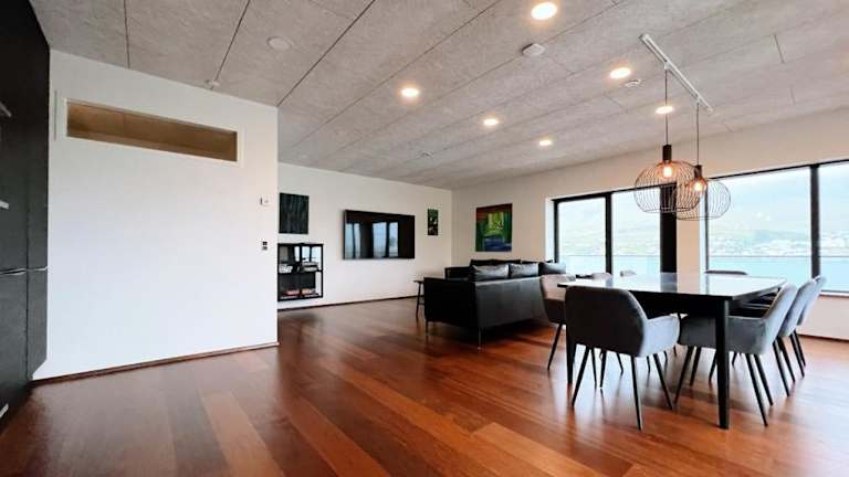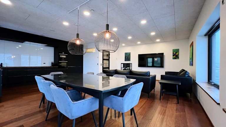 Das Stunning Ocean View Penthouse Apartment befindet sich in Øravík und bietet einen traumhaften Blick auf das Meer. Die Umgebung lädt zu Spaziergängen entlang der Küste ein, bei denen Sie die frische Meeresbrise genießen können. Entdecken Sie auch die natürliche Schönheit der Umgebung und erkunden Sie die nahe gelegenen Sehenswürdigkeiten. Der Flughafen Vágar ist bequem erreichbar und ermöglicht Ihnen eine problemlose Anreise.
