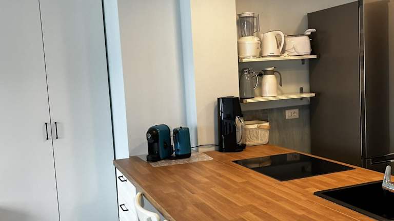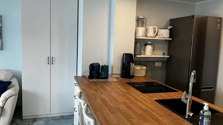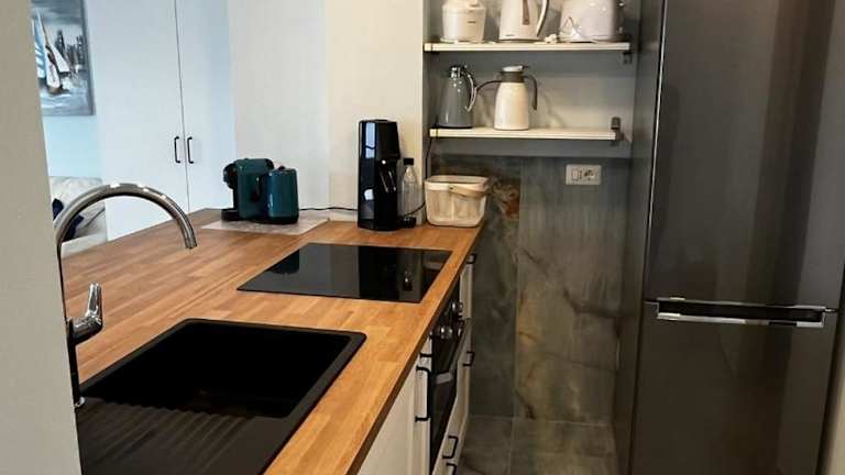 Die Ferienwohnung umfasst ein Schlafzimmer, eine voll ausgestattete Küche mit Kühlschrank und Geschirrspüler, einen Flachbild-TV sowie einen gemütlichen Sitzbereich. Das Badezimmer ist mit einem Bidet ausgestattet. Handtücher und Bettwäsche werden in der Unterkunft bereitgestellt.