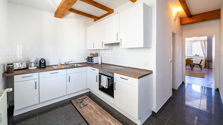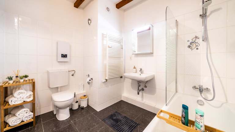 Die Ferienwohnung verfügt über zwei Schlafzimmer, ein Badezimmer mit Dusche und Badewanne sowie ein Wohnzimmer mit Sitz- und Essbereich. Außerdem ist eine Nintendo Wii Spielekonsole vorhanden. Handtücher und Bettwäsche werden bereitgestellt.