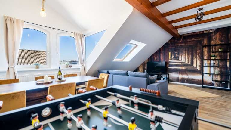 Das stylische Penthouse bietet eine großzügige Fläche von 100 m2 und wurde in einem Gebäude aus dem Jahr 1950 untergebracht. Die Unterkunft wird von einem privaten Gastgeber geführt und hat eine Nichtraucherpolitik in allen öffentlichen und privaten Bereichen.