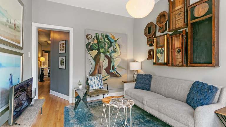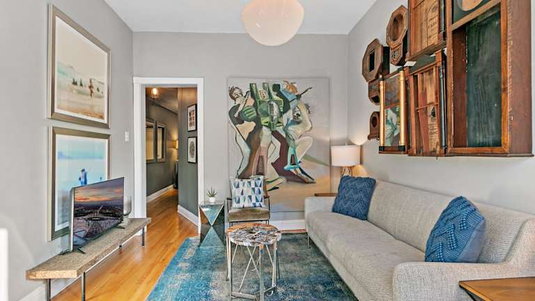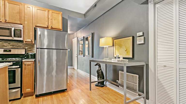 Stylish 2BR Pad with Up-to-date Comforts - Halsted rep bietet modernes Wohnen mit 2 Schlafzimmern, einem Wohnzimmer mit Flachbild-TV, einer voll ausgestatteten Küche sowie einem Badezimmer mit Dusche. Die Unterkunft ist Nichtraucherzonen und gestattet Haustiere unter Umständen gegen Gebühr. Sicherheitsmaßnahmen umfassen Rauchmelder und Videoüberwachung in Gemeinschaftsbereichen.