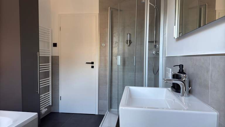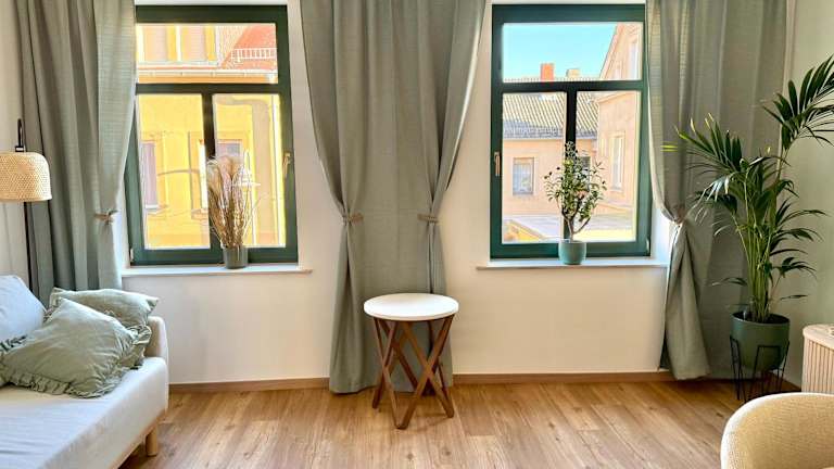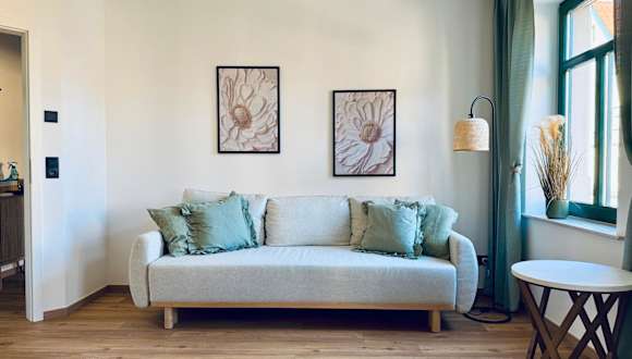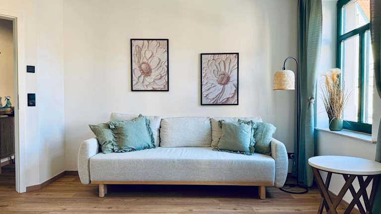 Die Ferienwohnung besteht aus 1 Schlafzimmer, einem Wohnzimmer, einer voll ausgestatteten Küche mit Kühlschrank und Kaffeemaschine sowie einem Badezimmer mit Dusche und kostenlosen Pflegeprodukten. Bettwäsche und Handtücher werden gestellt.