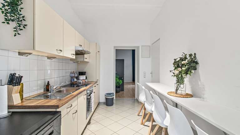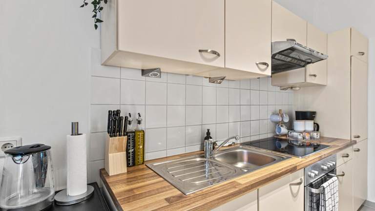 Die Wohneinheiten verfügen über eine voll ausgestattete Küche, die unter anderem einen Kühlschrank, Herdplatte, Toaster, Kaffeemaschine und Wasserkocher umfasst. Ein eigener Essbereich ist ebenfalls vorhanden.