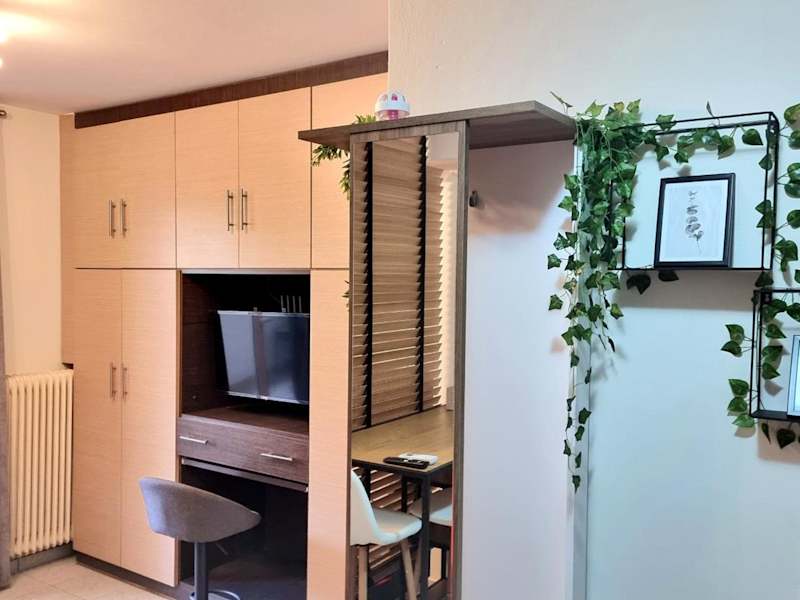 Das klimatisierte Apartment im Stylish Studio - Your private place in Lamia bietet einen komfortablen Aufenthalt mit moderner Ausstattung. Es verfügt über einen Essbereich, eine Küchenzeile mit einem Kühlschrank und eine Kaffeemaschine. Das Apartment ist geschmackvoll eingerichtet und bietet einen Balkon mit Blick auf den Garten. Handtücher und Bettwäsche werden gestellt, um den Gästen einen angenehmen Aufenthalt zu ermöglichen.