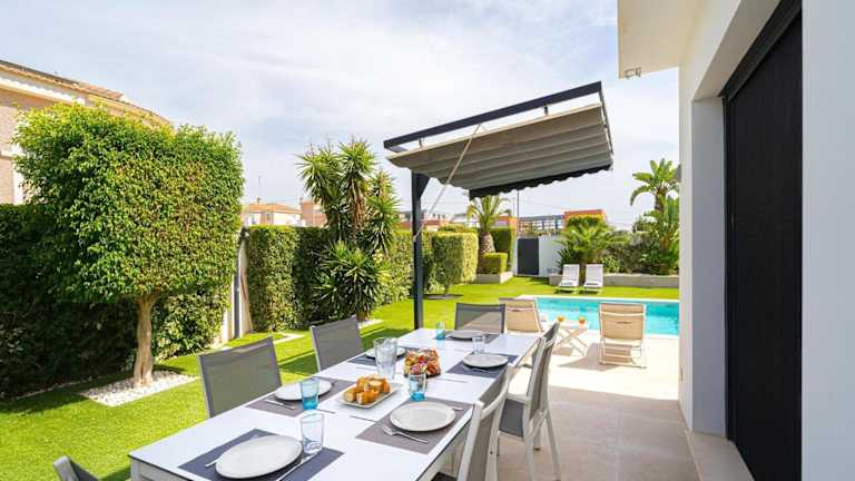 Die Villa verfügt über 4 Schlafzimmer, ein Wohnzimmer mit TV, eine gut ausgestattete Küche einschließlich Kühlschrank und Geschirrspüler sowie 3 Badezimmer mit Dusche. Handtücher und Bettwäsche werden zur Verfügung gestellt. Die Unterkunft bietet zudem Klimaanlage und Möglichkeiten zur Selbstverpflegung in der Gemeinschaftsküche.
