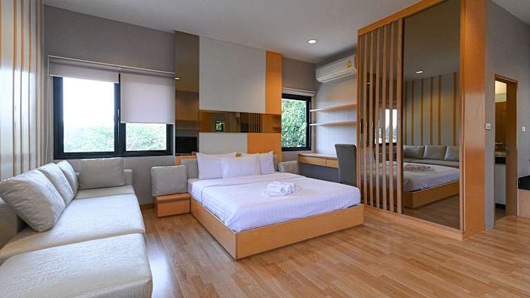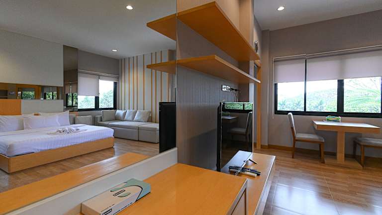 Die Zimmer im Suanphung Bonsai Village sind komfortabel und bieten einen Balkon mit Blick auf den Garten. Jedes Zimmer verfügt über Klimaanlage und einen Flachbild-TV. Die Unterkunft bietet auch Familienzimmer, um den Bedürfnissen von Gästen mit Kindern gerecht zu werden.