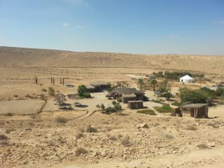 Wir sind eine kleine Übernachtungsfarm im Herzen der Israelischen Wüste und sehr abgeschieden. Wir bieten Succot (im biblischen Sinnne Laubhütten, bei uns jedoch ein wenig komfortabler ausgetattet) die gebucht werden können. Unser Angebot beinhaltet Frühstück und Freitags auch Abendessen. Wir sind sehr auf Natur ausgelegt und halten alles sehr sauber aber auch sehr naturnah. Die Succot haben so z.b keinen eigenen Boden sonder sitzen direkt auf dem Wüstenboden mit nur Matten und Teppichen ausgelegt. Toiletten und Duschen sind geteilt. Gegessen wird gemeinsam. Wir haben auch einige Tiere, Pferde, Esel , Hühner, Pfaue, Kaninchen, Hunde und Katzen. Alle unsere Tiere sind geimpft und sehr sehr freundlich. Ein befreundeter Beduine hat seine Kamele bei uns untergestellt und Kamelritte sowie ein Abendessen in einem echten Bediunenzelt kann über und organisiert werden. Tagsausflüger können sich in unserem Yurt Cafe erfrischen mit kaltem und heissen Getränken. Von April bis November ist auch unser Pool geöffnet und eingelassen und für unsere Gäste kostenlos.