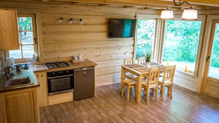 Die Wohneinheiten im Hotel Sucholand sind komfortabel und modern eingerichtet. Jede Einheit verfügt über eine Terrasse, auf der Sie die frische Luft und die schöne Aussicht genießen können. Die Küchenzeile ist mit einem Kühlschrank, einem Kochfeld, einer Kaffeemaschine und einem Wasserkocher ausgestattet, so dass Sie sich selbst versorgen können. Der Essbereich bietet ausreichend Platz für Mahlzeiten mit der Familie oder Freunden. Ein Flachbild-TV sorgt für Unterhaltung und das eigene Bad ist mit einer Dusche und einem Haartrockner ausgestattet.