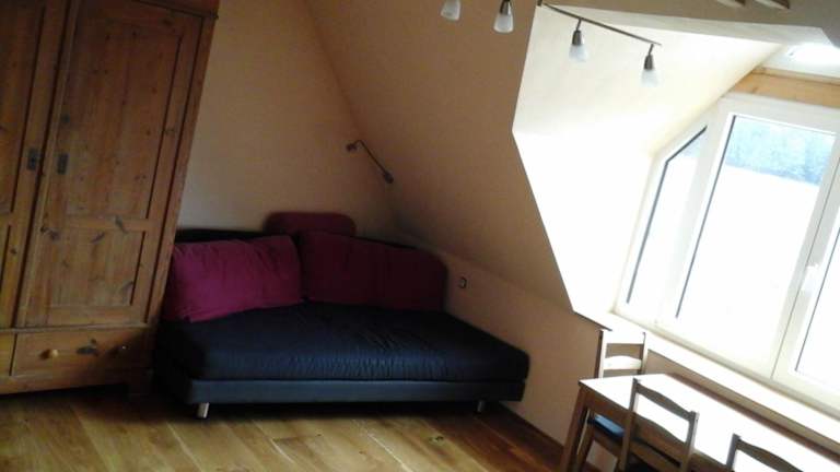Die Ferienwohnung besteht aus einem Schlafzimmer, einem Wohnzimmer und einer voll ausgestatteten Küchenzeile, die mit einem Kühlschrank und einer Kaffeemaschine ausgestattet ist. Es gibt ein Badezimmer mit Dusche und Haartrockner. Handtücher und Bettwäsche werden bereitgestellt. Die Unterkunft bietet zusätzliche Annehmlichkeiten wie kostenlosen Privatparkplatz und Heizung.