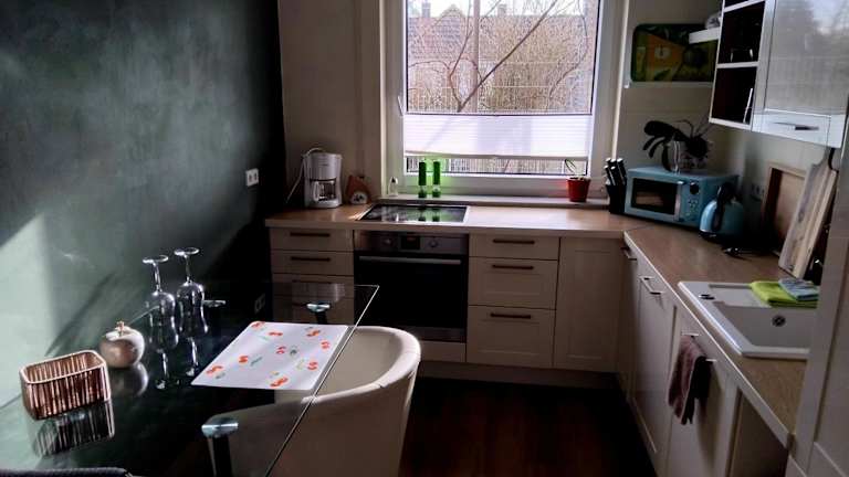 Die Ferienwohnung verfügt über ein Schlafzimmer, ein Wohnzimmer mit einem Flachbild-TV sowie eine gut ausgestattete Küche, die mit einem Kühlschrank und einem Geschirrspüler ausgestattet ist. Zudem bietet sie ein Badezimmer mit Dusche. Handtücher und Bettwäsche werden bereitgestellt.