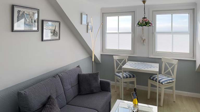 Die Umgebung des Hotels bietet eine Vielzahl von Freizeitmöglichkeiten. Entspannen Sie am Strand Kniepsand, erkunden Sie die umliegende Natur bei Wanderungen oder Fahrradtouren oder besuchen Sie die nahe gelegenen Sehenswürdigkeiten wie die Windmühle von Amrum und die Amrumer Odde. Das Hotel bietet kostenfreie Privatparkplätze für Gäste, die mit dem Auto anreisen.