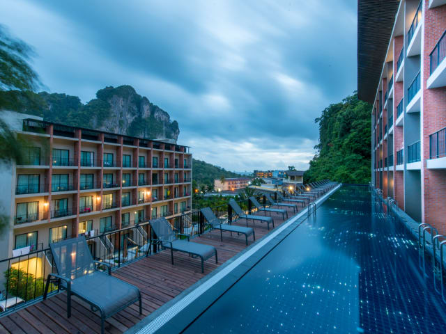 Das Sugar Marina Hotel CLIFFHANGER Aonang bietet einen 24-Stunden Empfang und verschiedene Dienstleistungen wie Gepäckaufbewahrung, einen Safe, eine Wechselstube und einen Geldautomaten. Ein Gardenbereich zum Entspannen, sowie verschiedene Freizeitangebote sind ebenfalls vorhanden. Die Unterkunft zeichnete sich durch einen Aufzug und behindertengerechte Annehmlichkeiten aus. Die Hotelsafe und die Garage oder der kostenlose Parkplatz erhöhen den Komfort für die Gäste. Das Hotel eröffnete 2017 und hat 152 Zimmer in insgesamt 5 Stockwerken.