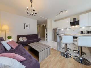 Sugar Plum Apartment Bielany ist eine Ferienwohnung, die gemütlichen Komfort und eine praktische Ausstattung bietet.