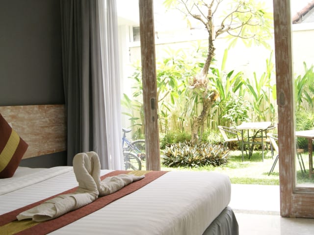 Das Sugiras Living in Denpasar bietet Ihnen einen komfortablen und entspannten Aufenthalt. Mit kostenfreien Fahrrädern und kostenlosem WLAN können Sie die Umgebung erkunden und mit Familie und Freunden in Verbindung bleiben. Die klimatisierten Zimmer sind gut ausgestattet und verfügen über Annehmlichkeiten wie Sat-TV, CD-/DVD-Player und Safe. Das eigene Bad ist modern und mit kostenfreien Pflegeprodukten ausgestattet. Genießen Sie den täglichen kostenfreien Nachmittagstee und lassen Sie sich von speziellen Gerichten im Zimmerservice verwöhnen. Das Sugiras Living bietet Ihnen auch eine 24-Stunden-Rezeption, einen schönen Garten und eine Terrasse. Zusätzlich stehen Ihnen ein Ticketservice, ein Tourenschalter und ein Conciergeservice zur Verfügung. In der Umgebung können Sie verschiedene Freizeitaktivitäten wie Radfahren genießen. Der Strand von Sanur ist nur 10 Fahrminuten entfernt und Kuta erreichen Sie in 20 Fahrminuten.