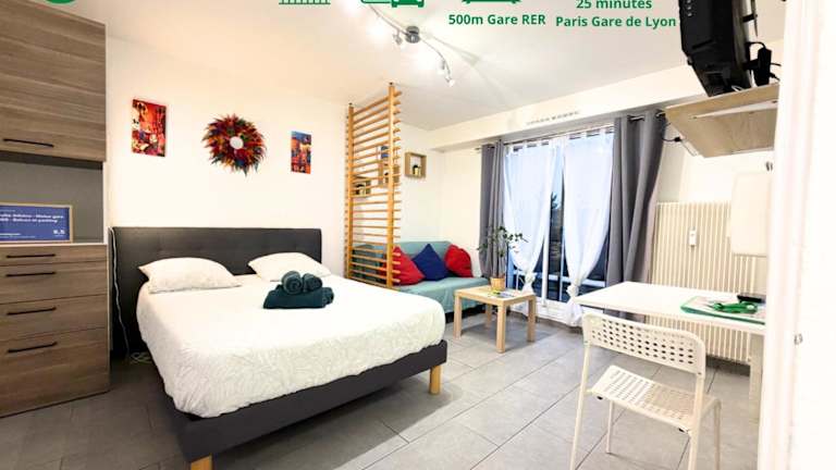 Das Suite Athéna - Melun gare RER - Studio avec Balcon et parking in Melun befindet sich in einer günstigen Lage, nur 50 km von Paris-Gare-de-Lyon entfernt. Von hier aus haben Sie einen herrlichen Blick auf die Stadt und können bequem die Sehenswürdigkeiten von Paris besichtigen. Der nächstgelegene Flughafen, Paris-Orly, ist nur 36 km entfernt.