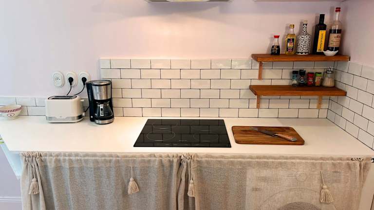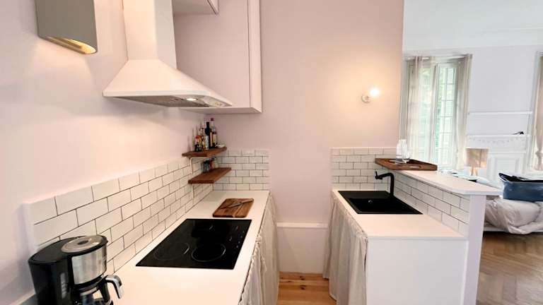 Die Ferienwohnung umfasst 1 Schlafzimmer, 1 Badezimmer sowie eine voll ausgestattete Küche. Zur Ausstattung gehören Bettwäsche, Handtücher und ein Flachbild-TV mit Kabelkanälen. Die Terrasse bietet einen Blick auf den Garten.