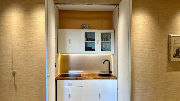 Die Ferienwohnung verfügt über ein Schlafzimmer, ein Wohnzimmer, eine voll ausgestattete Küchenzeile mit Kühlschrank und Kaffeemaschine sowie ein Badezimmer mit Bidet und Dusche. Zudem ist die Unterkunft klimatisiert und bietet einen Flachbild-TV.