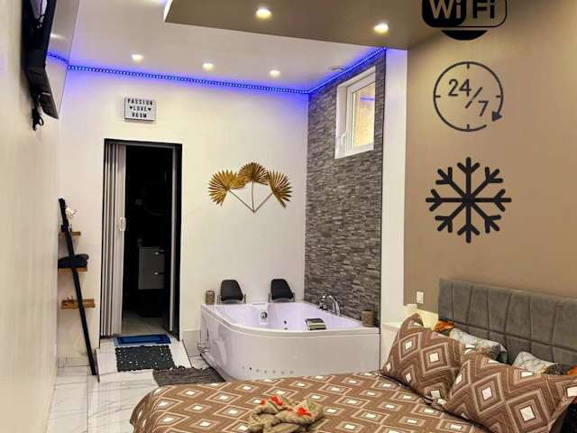 Die Ferienwohnung verfügt über ein klimatisiertes Schlafzimmer mit einem Badezimmer, das mit einer Dusche, einem Whirlpool sowie kostenlosen Pflegeprodukten ausgestattet ist. Eine Küchenzeile mit Kühlschrank, Mikrowelle und Kaffeemaschine ist ebenfalls vorhanden.