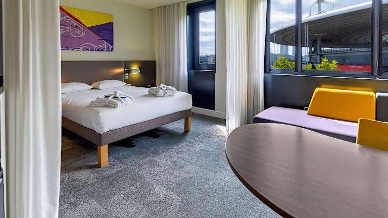 Das Novotel Suites Paris Stade de France befindet sich in Saint-Denis und bietet eine erstklassige Lage direkt am Stade de France. Das Zentrum von Paris ist nur etwa 3 km entfernt und kann bequem mit den öffentlichen Verkehrsmitteln erreicht werden. Der Flughafen Charles de Gaulle, der Gare du Nord und das Ausstellungszentrum Villepinte sind ebenfalls gut erreichbar. Die RER-Linie B hält in der Nähe des Hotels.