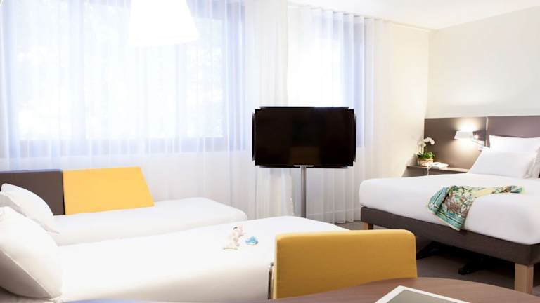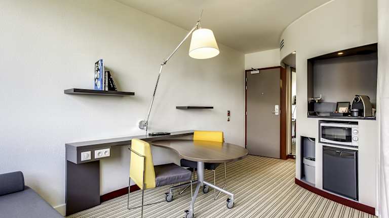 Die Suiten im Novotel Suites Paris Stade de France sind geräumig und bieten eine Fläche von 30 m². Sie sind so konzipiert, dass Ihr Komfort und Ihr Wohlbefinden garantiert sind. Die Suiten verfügen über eine Klimaanlage, eine Nespresso-Kaffeemaschine, eine Mikrowelle und ein eigenes Bad mit Dusche und Badewanne. Sie können auch den Highspeed-Internetzugang nutzen, um mit der Welt in Verbindung zu bleiben.