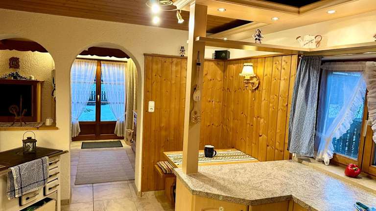 Das Ferienhaus umfasst zwei separate Schlafzimmer, einen Wohn-/Essbereich sowie ein Badezimmer mit Badewanne, Dusche und Haartrockner. Eine Kiefernsauna kann gegen einen geringen Aufpreis genutzt werden.