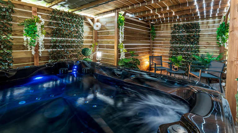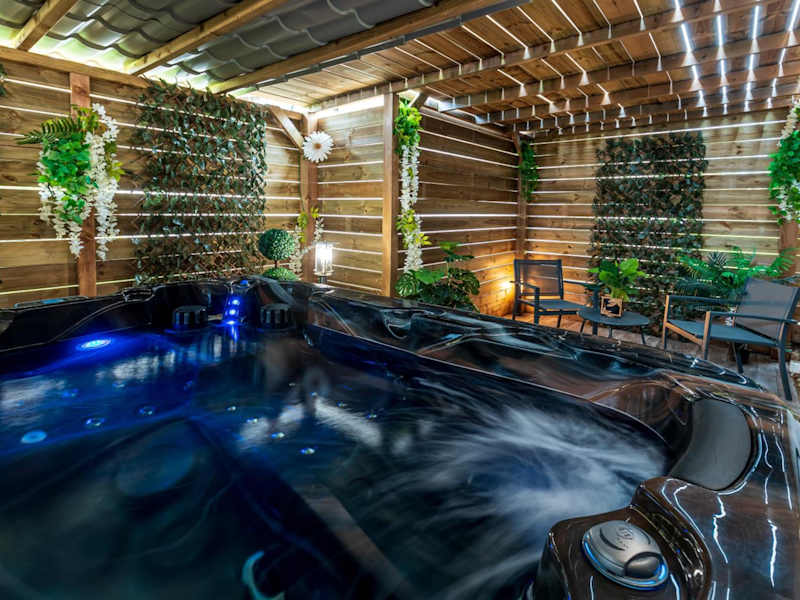 Das Ferienhaus bietet einen Whirlpool, in dem Sie entspannen können. Außerdem können Sie in der Umgebung wandern und Rad fahren. Der Garten steht Ihnen ebenfalls zur Verfügung.