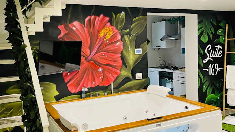 Verbringen Sie einen entspannten und komfortablen Aufenthalt im Suite169 in Bari. Das zentral gelegene Apartment bietet Ihnen einen Whirlpool sowie klimatisierte Unterkünfte mit kostenfreiem WLAN. Genießen Sie den Komfort eines eigenen Balkons, eines gemütlichen Sitzbereichs und eines Flachbild-TVs. Die voll ausgestattete Küche ermöglicht es Ihnen, Ihre eigenen Mahlzeiten zuzubereiten. Die Nähe zu beliebten Sehenswürdigkeiten und der Strand Pane e Pomodoro machen dieses Apartment zu einer idealen Wahl für Ihren Aufenthalt in Bari.