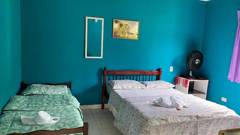 Das Pouso Doce Lar in Paraty ist eine gemütliche Pension, die sich 4,5 km vom Busbahnhof Paraty entfernt befindet. Hier erwartet Sie eine ruhige Umgebung mit einem schönen Garten, kostenfreien Privatparkplätzen und einer Terrasse. Die Zimmer bieten einen herrlichen Bergblick und sind mit einem TV und kostenfreiem WLAN ausgestattet. Einige Zimmer verfügen über einen Balkon. Die Pension liegt in der Nähe von Sehenswürdigkeiten wie dem Puppentheater, der Kirche Santa Rita und der Kirche Unserer Lieben Frau vom Rosenkranz. Der Matriz-Platz und das Kulturhaus sind ebenfalls leicht zu erreichen.